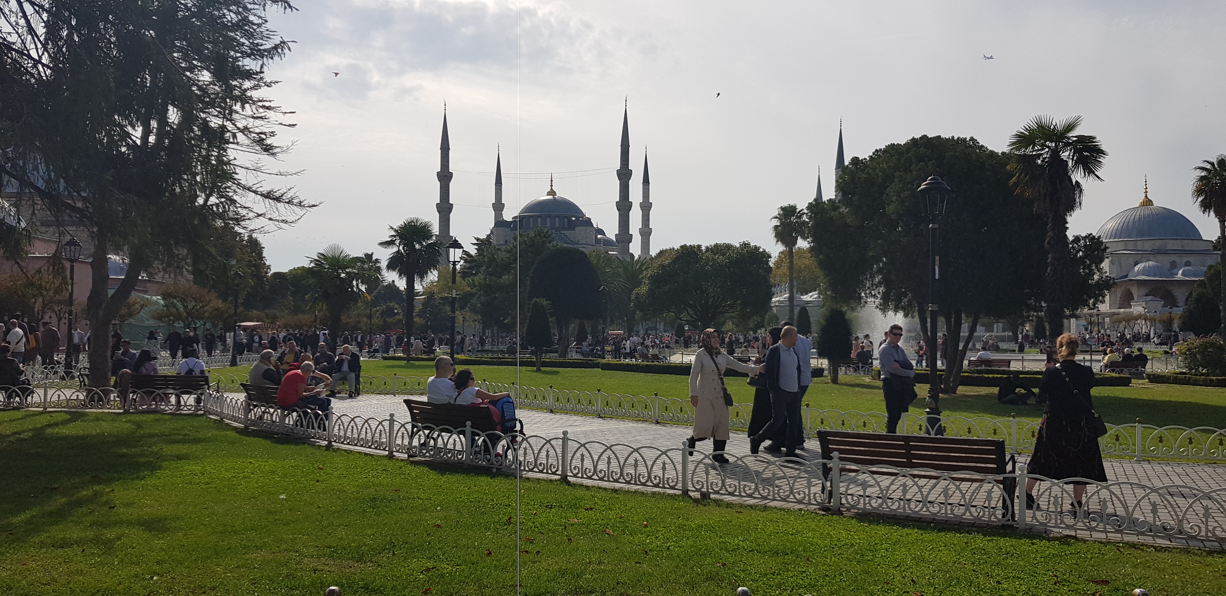 소피아성당의 맞은편에 있는불루모스크. 이슬람진영의 건축기술을 총동원하여 소피아성당보다 수백년 후에 건축되어지만 소피아성당의 건축술을 따라갈 수 없었다. 현재는 내부공사중으로 내부관람을 제대로 할 수 없다.